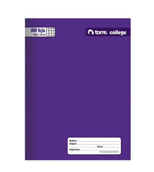 CUADERNO COLLEGE MARCA TORRE 5MM 100 HOJAS