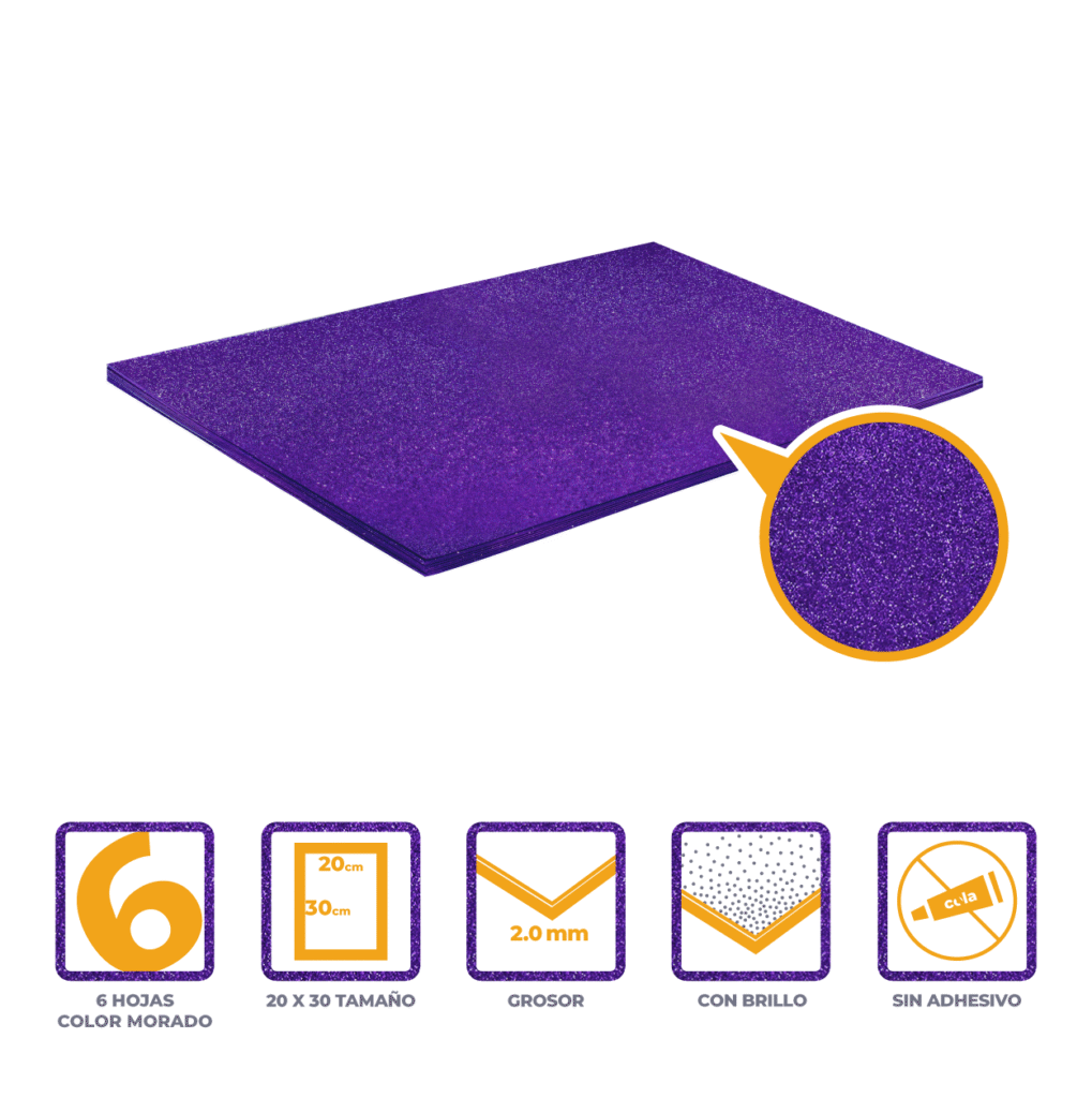 GOMA EVA GLITTER MORADO PAQ 6 UNI 20X30 CM