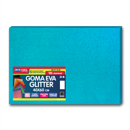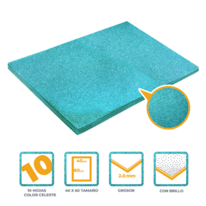 GOMA EVA GLITTER PLIEGO CELESTE 40X60 CM