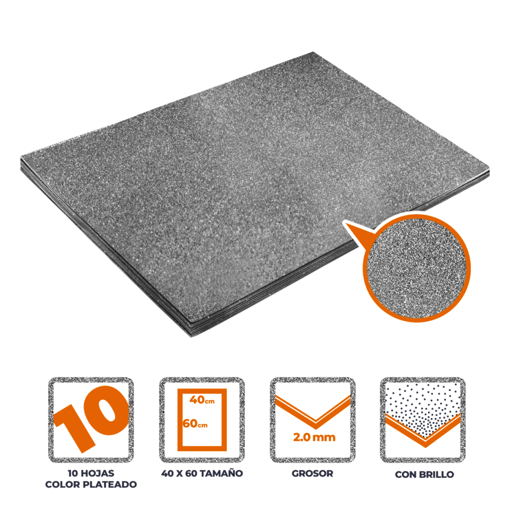 GOMA EVA GLITTER PLIEGO PLATEADO 40X60 CM