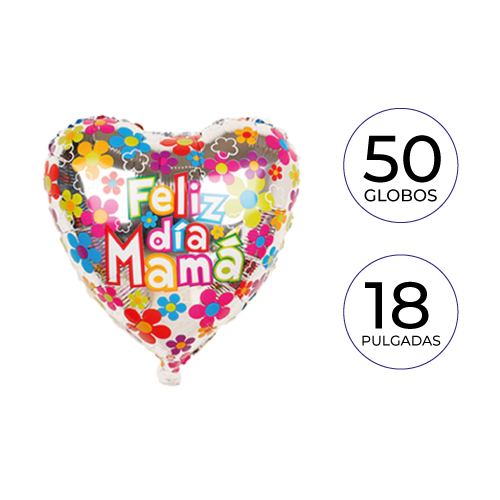 PAQ 50 GLOBOS FELIZ DIA MAMÁ 18 PULGADAS